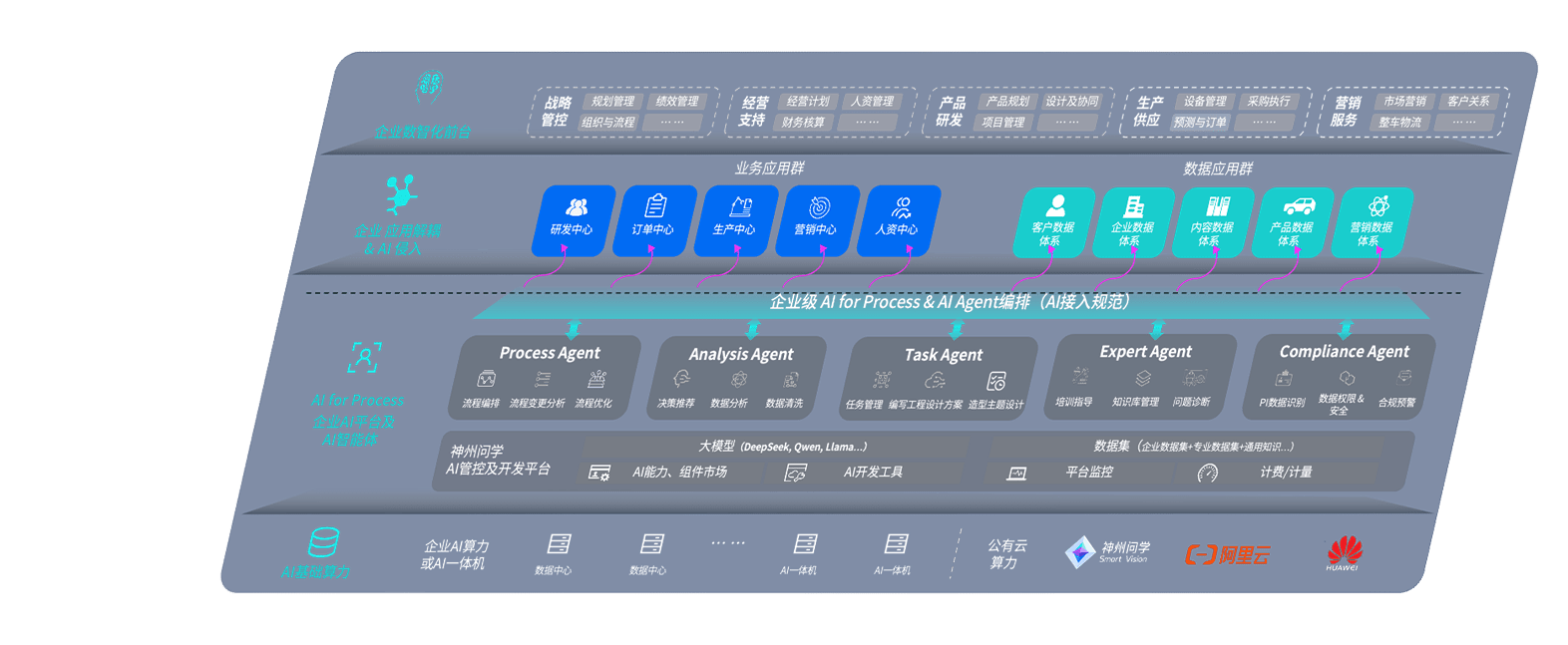 端到端的一站式AI工作空间深度融合了从企业战略规划到日常经营的全流程业务板块,,定向解决车企内部领域多、、、部门多、、、、链条长、、、、场景碎片化等难题,,,,支持车企快速构建以AI为核心的生产力写作体系,,实现任务执行与AI能力的无缝集成与交互